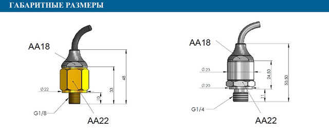 П'єзорезистивний датчик тиску серії EPT 22 для неагресивних газів, діаметр корпусу 22 мм, бюджетне рішення